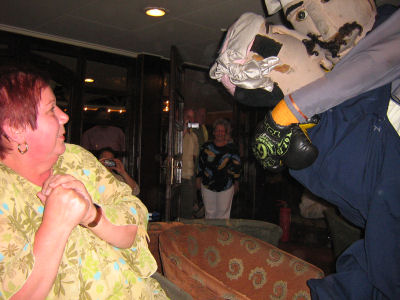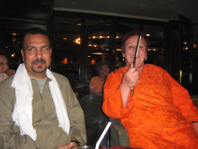 On Sunday evening we had a real nice evening event! The dining room was beautifully decorated by the crew, who all wore their traditional costumes. We were also encouraged to wear costumes we had purchased and of course you didn't have to ask me twice! But of course, not everyone participated. I'm hoping to get some more pictures from others.....