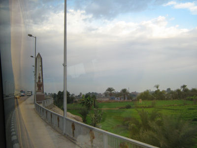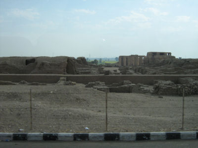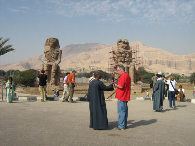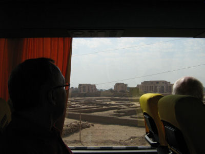 Wednesday we got up early to drive over to West Theben to visit the Valley of the Kings and Hatschepsut's tempel. Besides the hot air balloons already mentioned on the other page, we enjoyed some of the lvaried andscape. On the return trip we passed by the Ramesseum and stopped by two remaining Memnon statues.