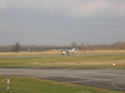 After the flights we then went back to my hometown. We only had time to see the basics like the main shopping mall, but we didn't manage to pop into my office! As it was Friday afternoon, most of the colleagues were already off for the weekend. After that we drove off toward my daughters hometown. Before stopping at my daughter's home, we took a detour to the airfield where I had got my first flight lessons, did my first solos, received my first license, etc. We were able to go into the hanger were a variety of airplanes were piled in, from glider planes (which Thumpy had never seen up close before), to a Wilga, an aerobatic plane, and many others. Among them was the power glider Dimona with the registration D-KAZE..... yes, that was THE plane that was hijacked and kept Frankfurt downtown in a state of emergency for many hours! |